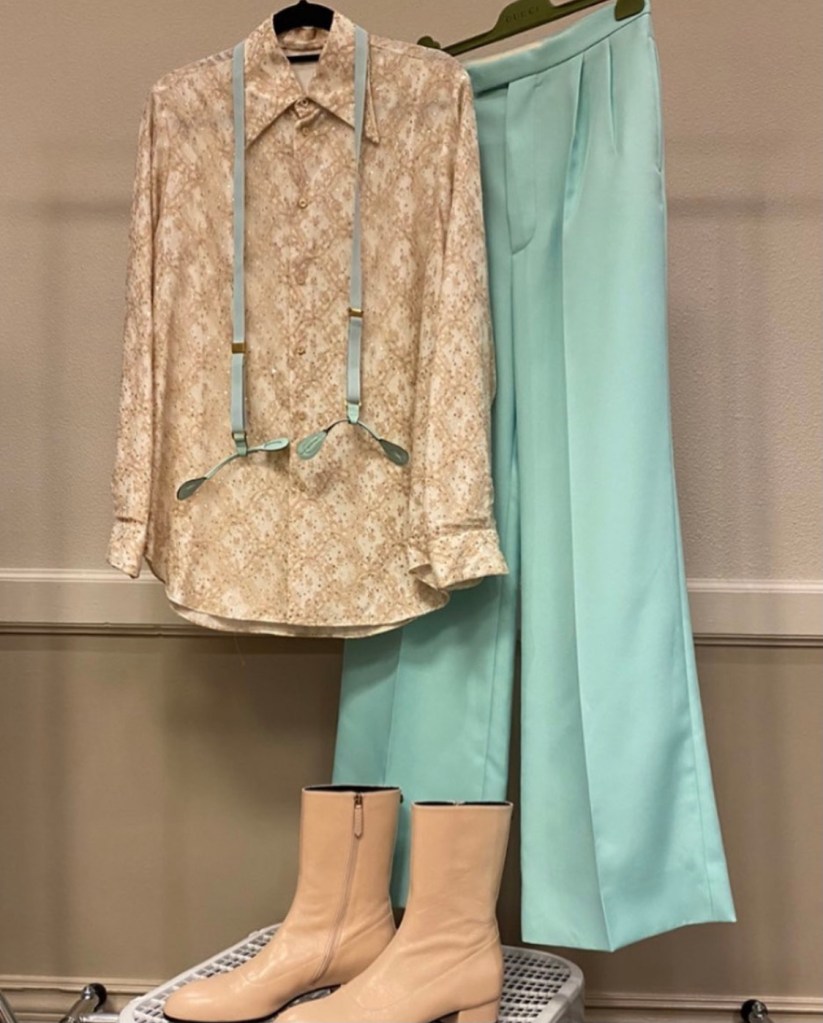 I liked it! It is better than red but it is still the same though! I think I just loved the suits too much. I guess his suspenders are what ‘Fine Line’ is. He did put on a sunflower hat and somehow looked so good in it, as usual.