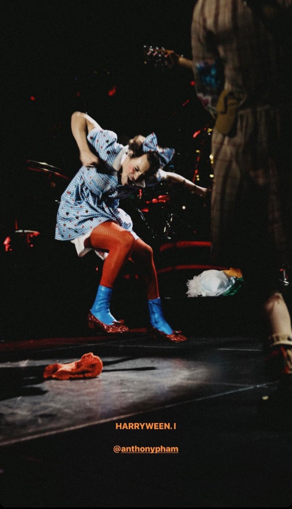Harry Styles was Dorothy from the Wizard of Oz and should I be surprised? Not really at all. He looked incredible! The detail of his whole outfit just blew everyone away and I hope everyone at the show is okay because I wouldn’t be standing still. I would be gone.